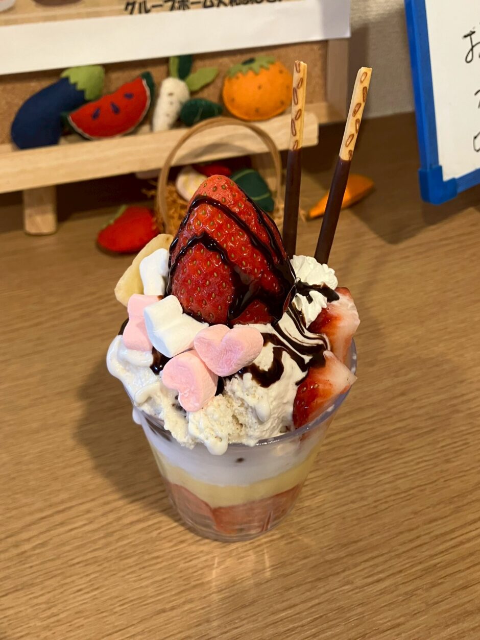 先日、施設で利用者さんと一緒にいちごパフェ作りを行いました。